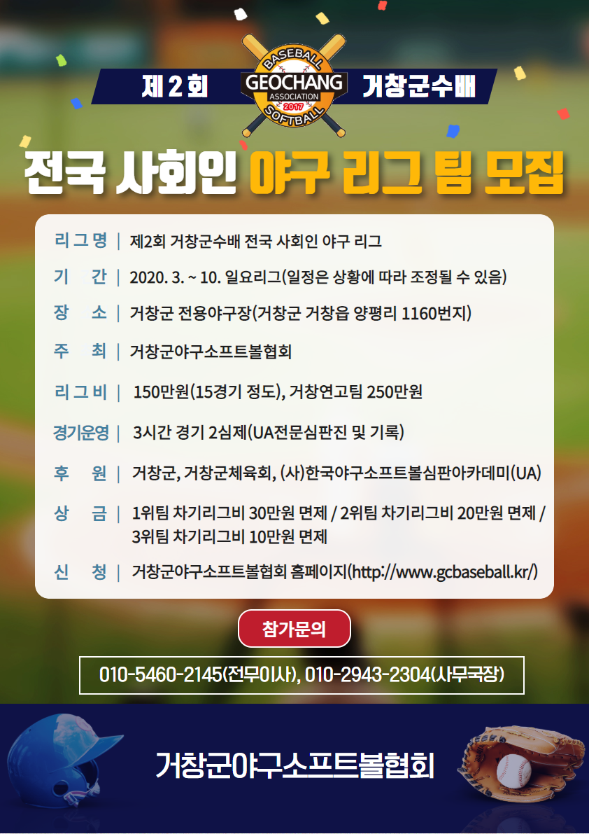 제2회 거창군수배 전국사회인 야구리그 팀 모집