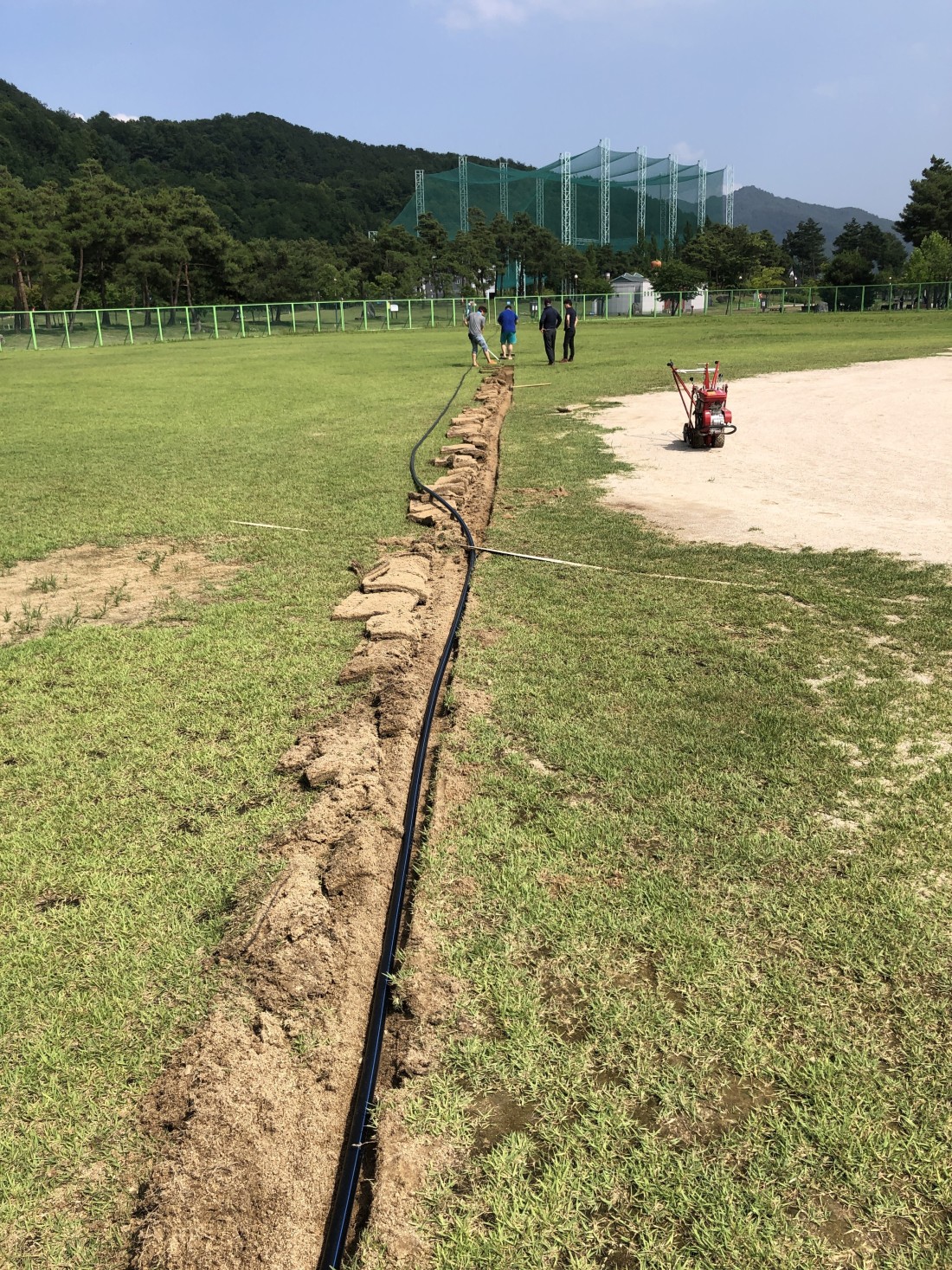 반차내고 전무이사, 총무이사 주관하여 협회이사분들께서 중월홈런존에서 3루측 덕아웃쪽으로 수도를 이설 설치 하였습니다.