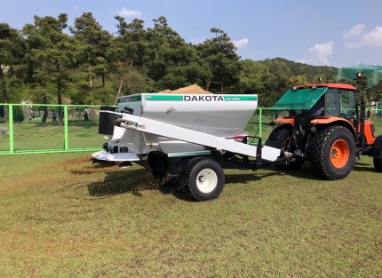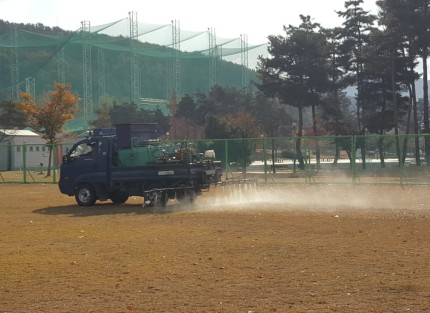야구장 외야 잔디 비료 살포 및 관리 작업 하였습니다.